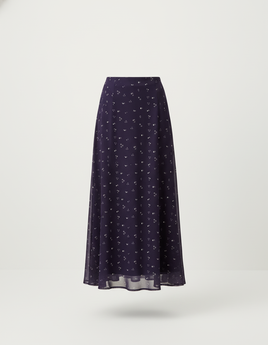 Plongez dans un univers de raffinement avec notre Jupe Midi Motif. Confectionnée dans une mousseline délicate d'un violet profond, elle offre une fluidité et une légèreté inégalées à chaque mouvement. Son motif subtil et aérien capte la lumière, ajoutant une dimension poétique à votre silhouette. Cette pièce unique est conçue pour la femme qui aspire à une élégance sans effort, capable de transformer un simple look en une déclaration de style.