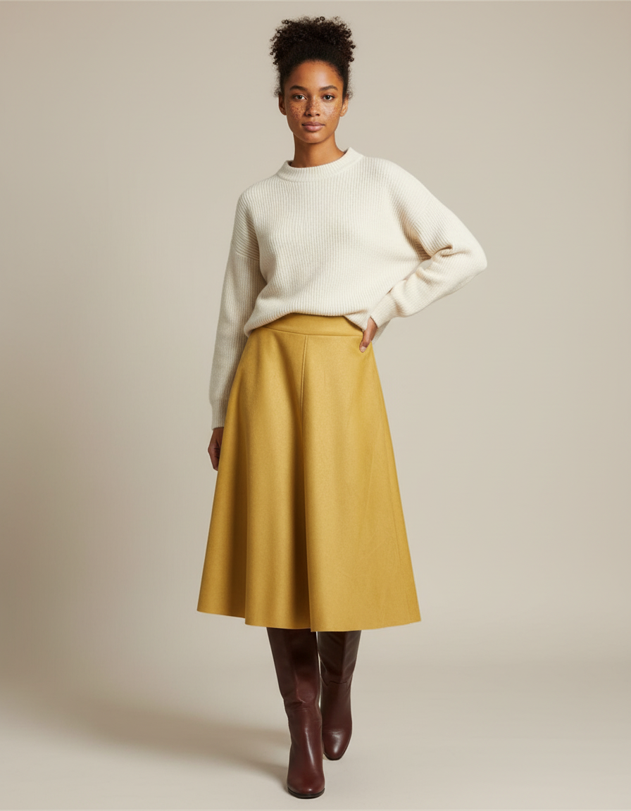 La Jupe Midi Moutarde : L'Élégance Chaleureuse de Votre Hiver
