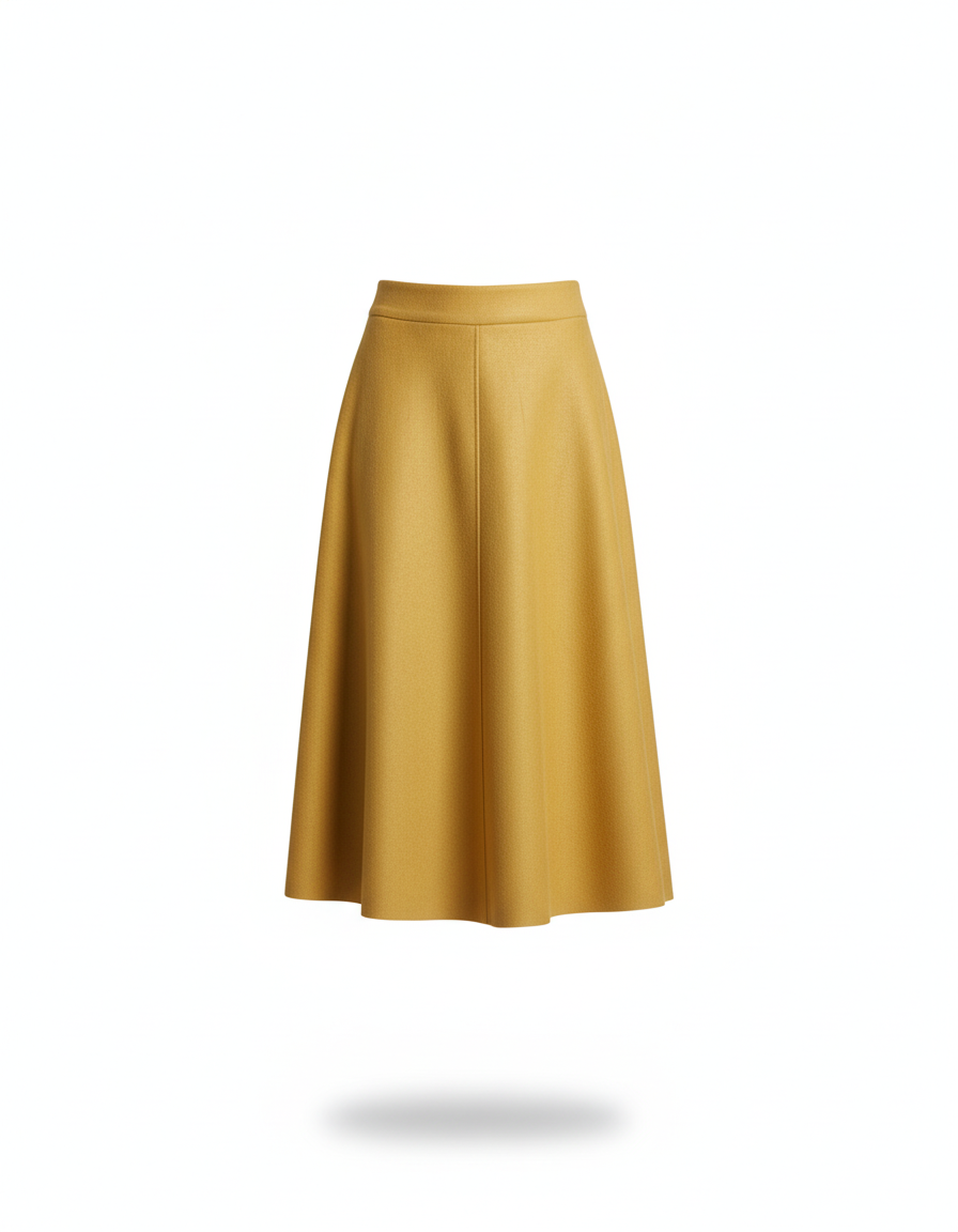 Adoptez un style élégant et intemporel avec notre jupe midi moutarde, parfaite pour toutes les occasions.