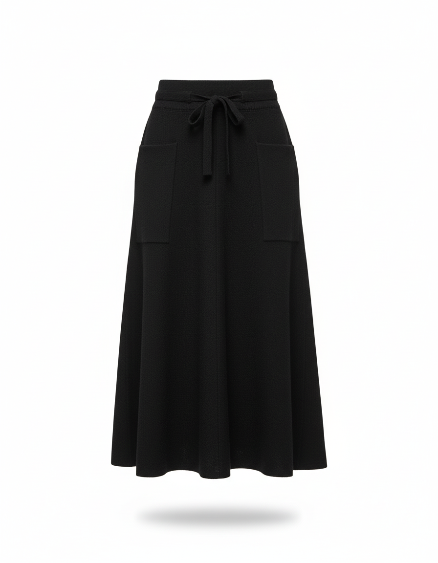 L'Élégance Fluide au Quotidien : La Jupe Midi Noir Maille