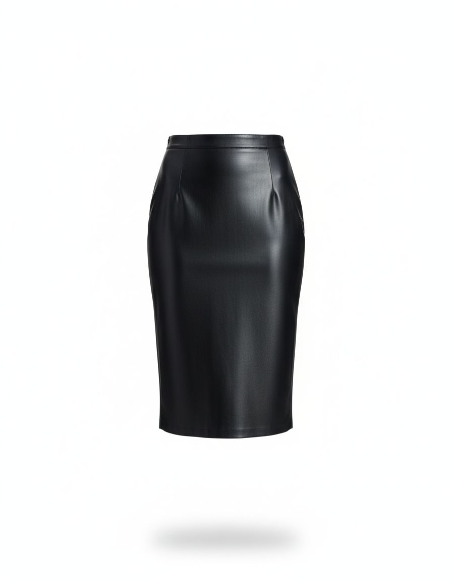 Conçue pour épouser votre silhouette sans jamais la contraindre, notre jupe crayon en simili cuir premium offre une liberté de mouvement surprenante. Son tissu de haute qualité, doux au toucher, garantit un confort optimal tout au long de la journée. Le tombé impeccable de cette jupe midi sublime vos courbes avec élégance, conservant sa forme et son allure sophistiquée, du matin jusqu'au soir. Marchez, asseyez-vous, bougez en toute confiance : cette pièce est pensée pour vous accompagner avec aisance et distinction dans toutes vos activités.