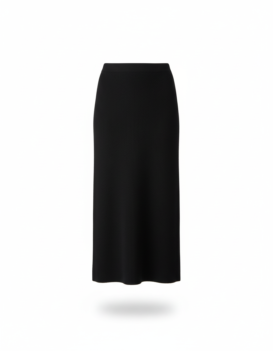 Conçue dans une maille premium finement côtelée, cette jupe offre un confort exceptionnel sans compromis sur le style. Son élasticité subtile garantit une liberté de mouvement totale, vous permettant de naviguer à travers vos journées avec aisance. Le tombé impeccable de la jupe, qui épouse délicatement la silhouette sans jamais entraver, assure une allure sophistiquée et une confiance inébranlable. C'est l'investissement parfait pour une élégance durable et un bien-être constant.