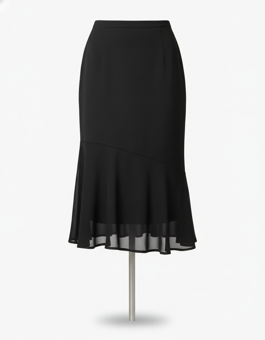 Jupe Midi Noire Mesh Élégante à Ourlet Volanté