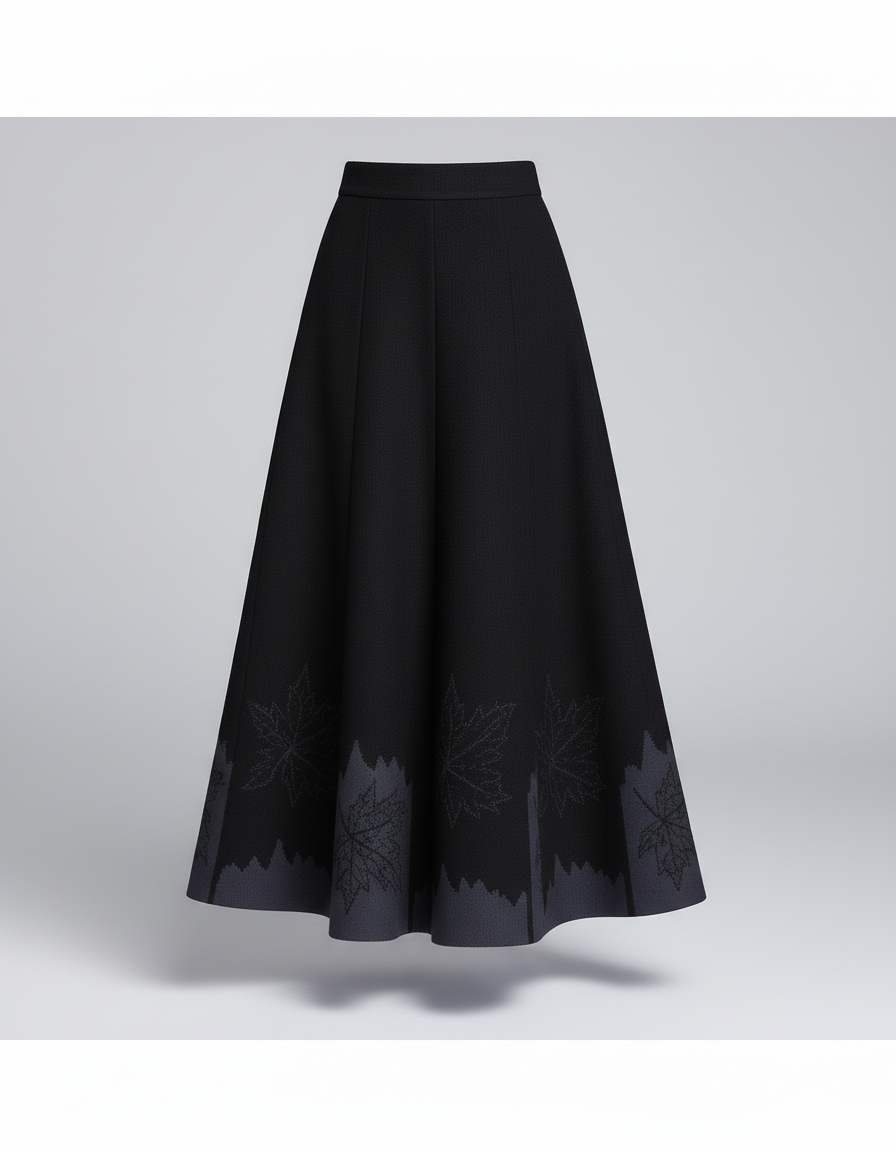 Jupe Midi Noire Motifs Feuilles Élégante : L'Art de la Distinction