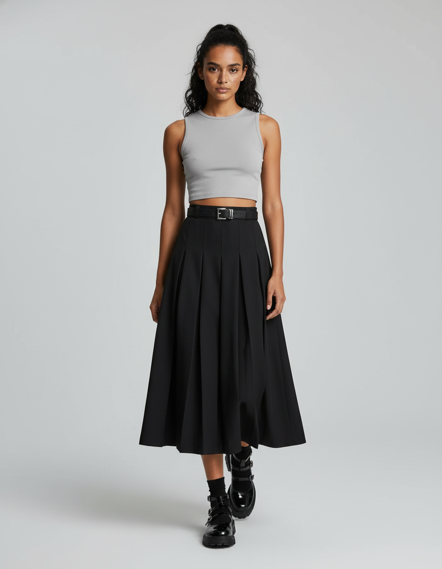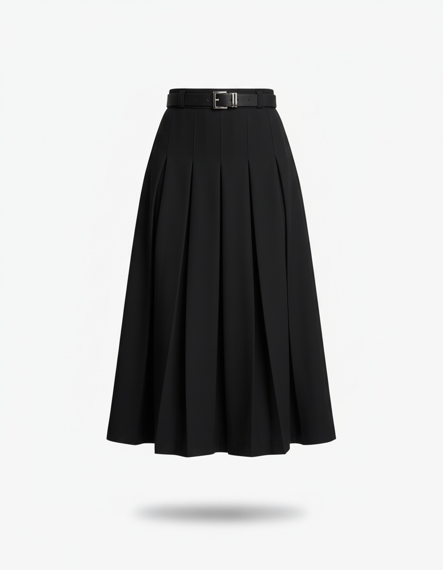 Élégance Redéfinie : La Jupe Midi Plissée Noire Indispensable