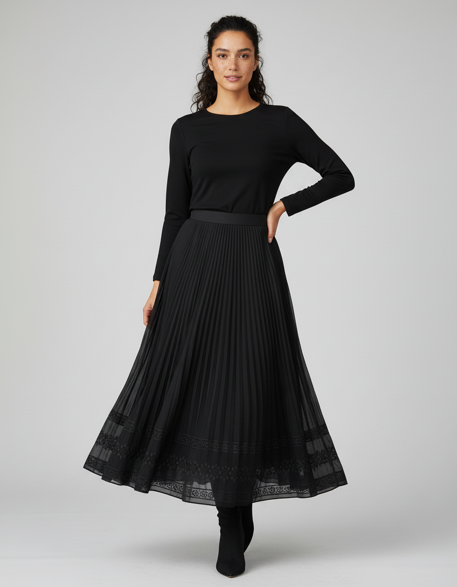 Comment entretenir votre Jupe Midi Noire Plissée Élégante graphique
