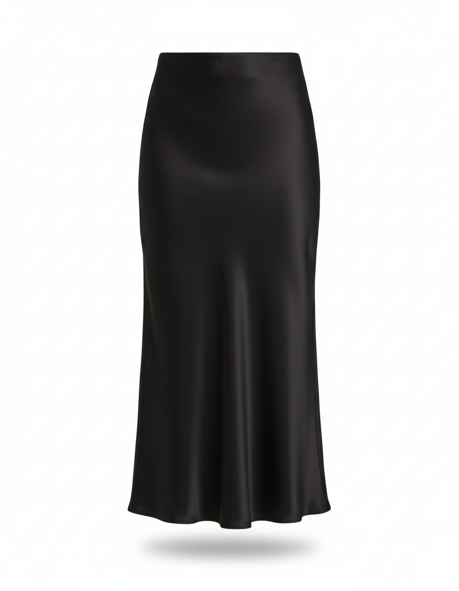 L'Essence du Chic Moderne : Votre Jupe Midi Noire en Satin