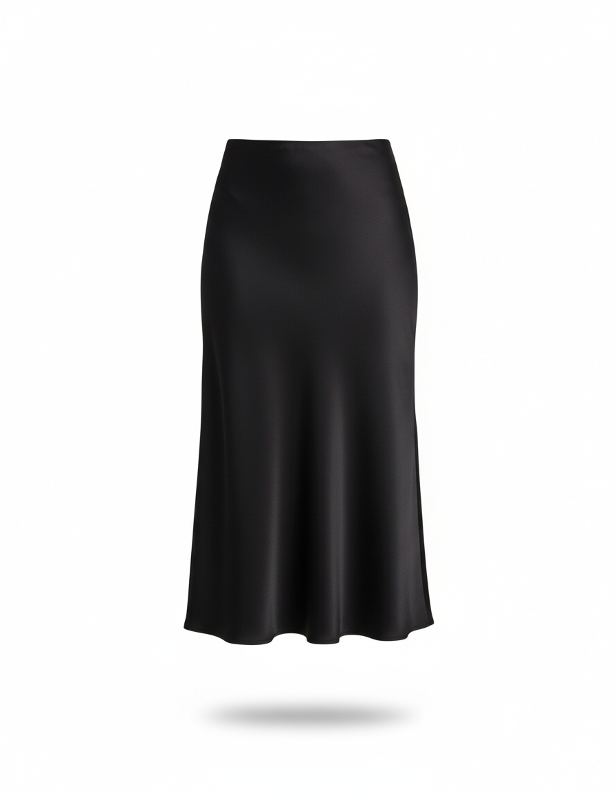 Adoptez l'élégance intemporelle avec notre jupe midi satinée, parfaite pour toutes les occasions.