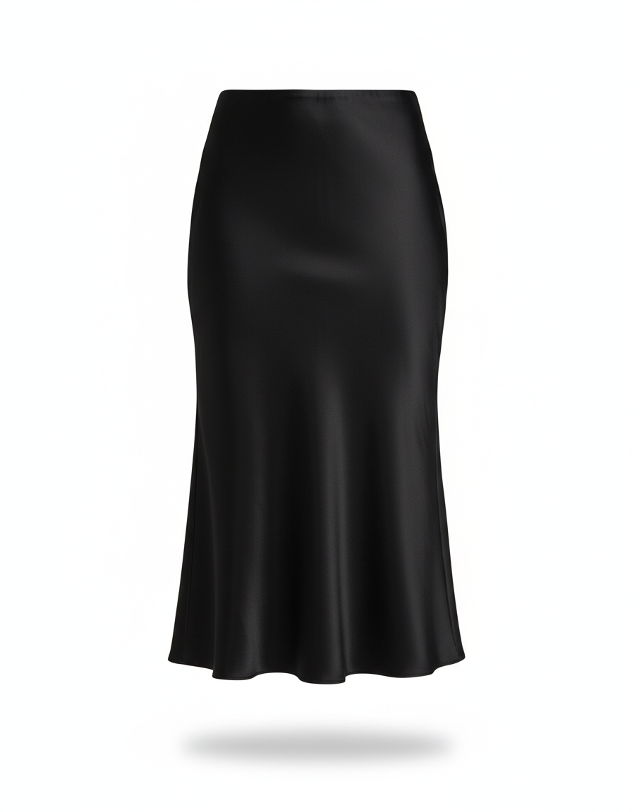 Jupe Midi Noire Satinée Élégante : L'Éclat Discret de Votre Garde-Robe