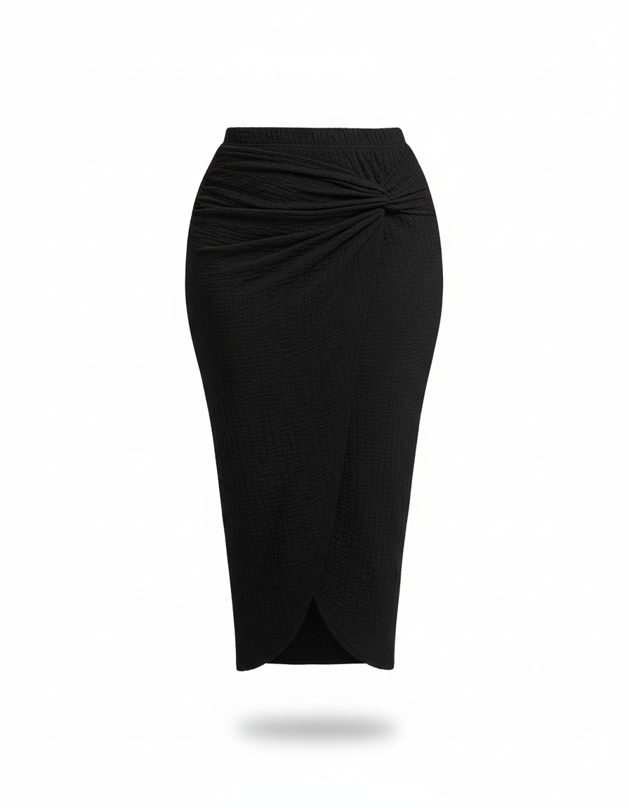 Adoptez un style chic et moderne avec notre jupe midi noire texturée, parfaite pour toutes les occasions.