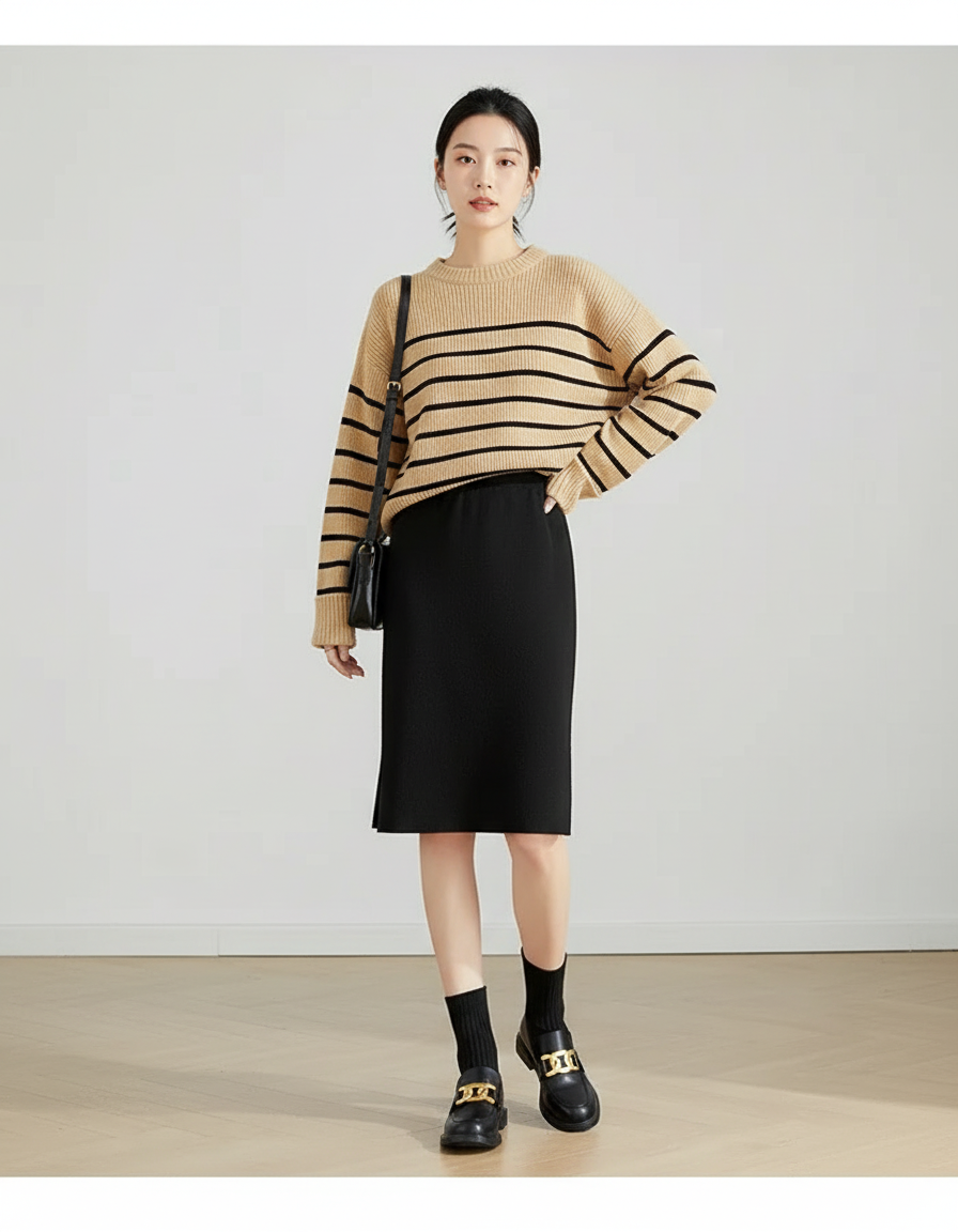 La Jupe Midi Noire Tricotée : L'Élégance Sans Effort au Quotidien