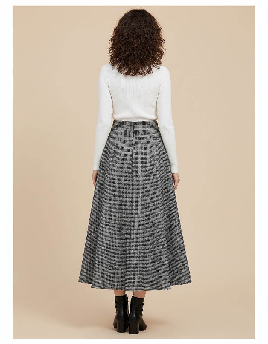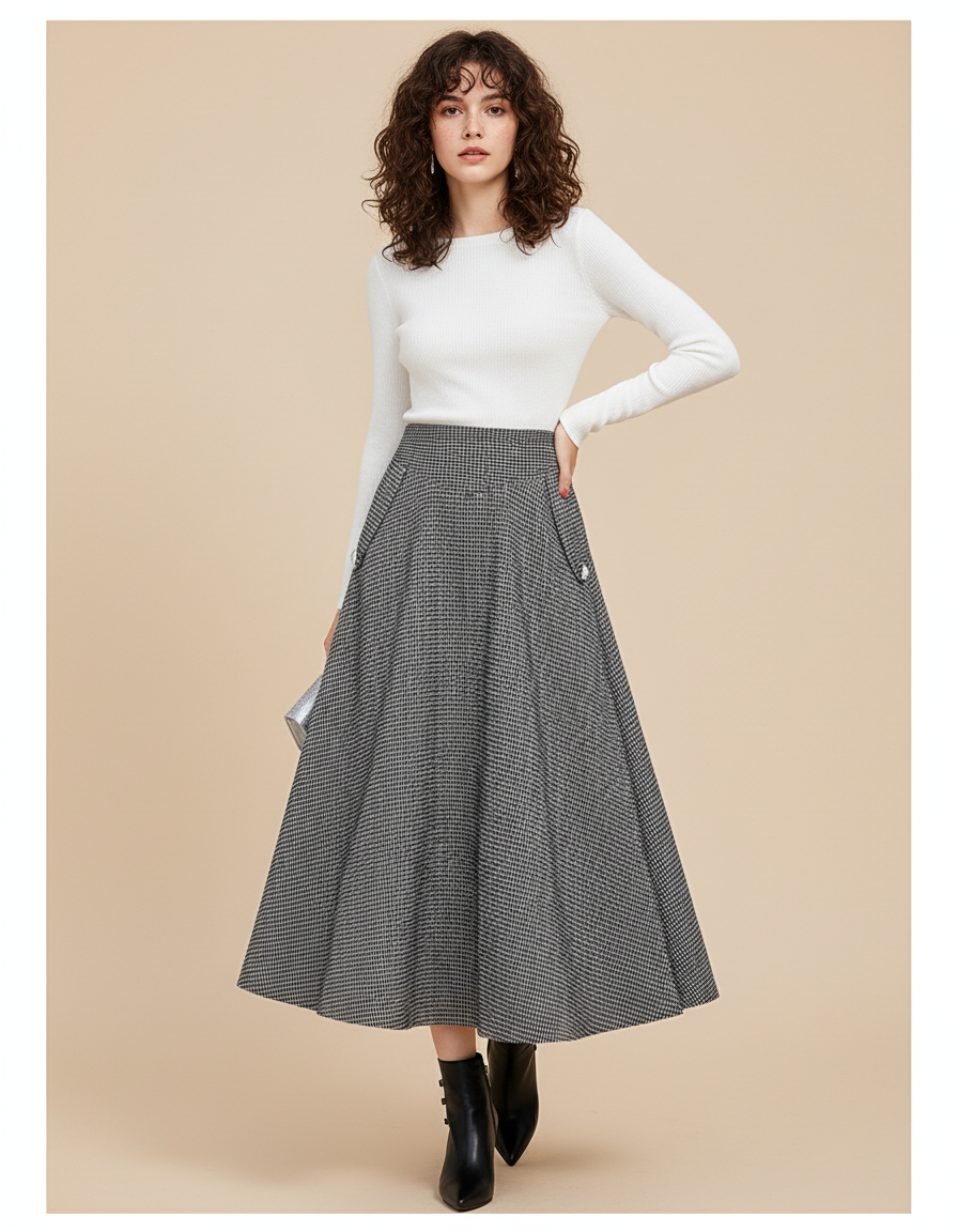 La Jupe Midi Pied de Poule : L'Élégance Intemporelle Réinventée