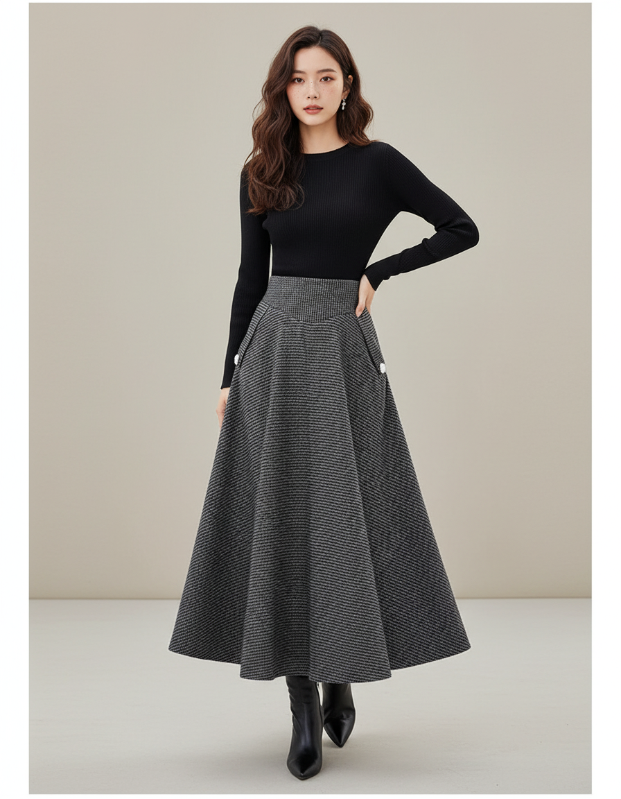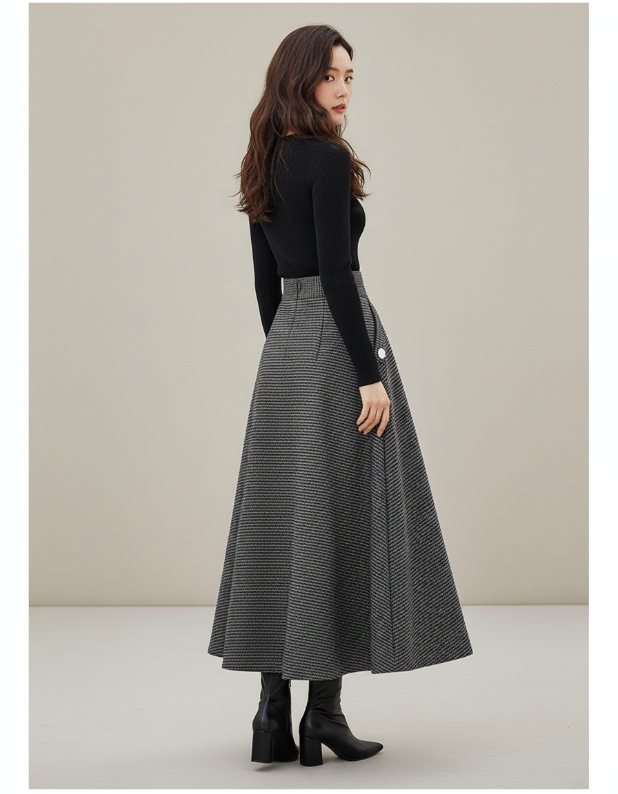 Jupe Midi Pied-De-Poule Grise Élégante : L'Essence du Style Intemporel