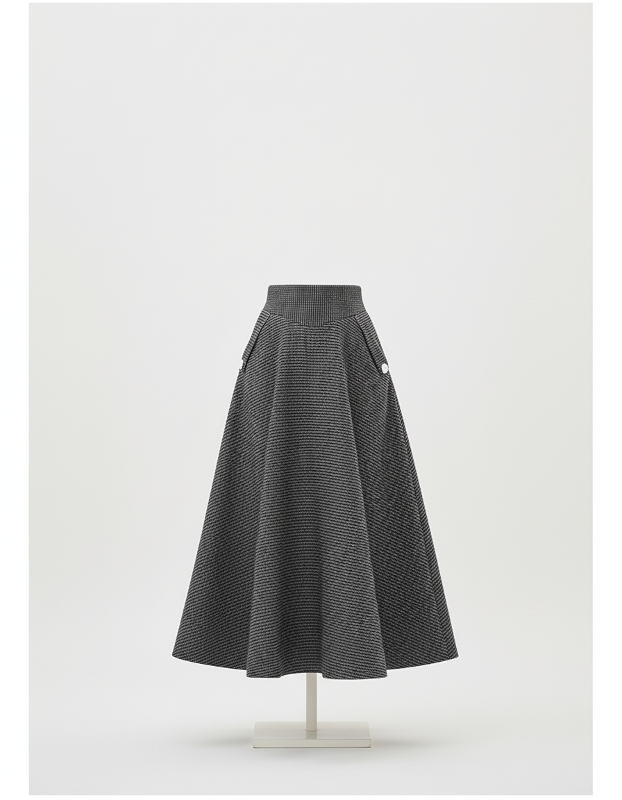Confectionnée dans un tweed gris pied-de-poule d'une qualité exceptionnelle, notre Jupe Midi Évasée incarne l'élégance discrète et le raffinement. Sa coupe ample et évasée assure une liberté de mouvement incomparable, vous permettant de vous déplacer avec aisance et grâce tout au long de votre journée. Le tombé impeccable de cette jupe met en valeur votre silhouette sans jamais la contraindre, tandis que la texture douce et structurée du tweed garantit un confort absolu, du matin au soir.