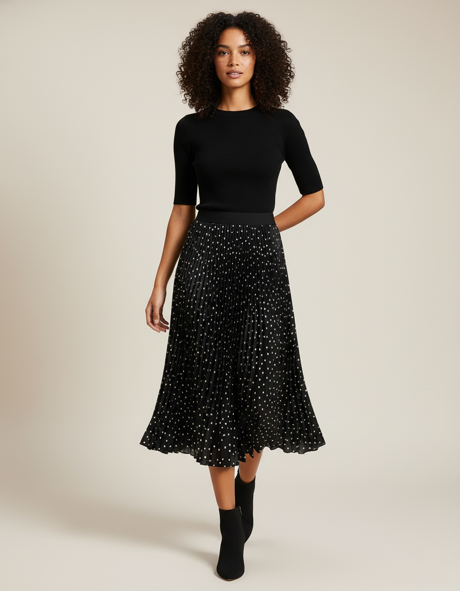 La Jupe Midi Plissée À Pois Élégante : Votre Alliée Style Incontournable
