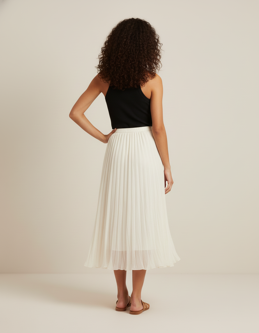 La Jupe Midi Plissée Crème : Légèreté et Style Incontournable