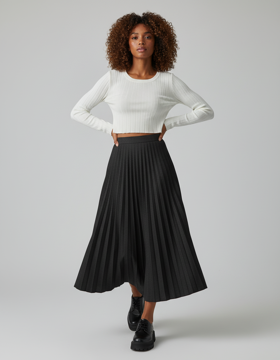 La Jupe Midi Plissée Grise Chaude : L'Alliance Parfaite du Style et du Confort
