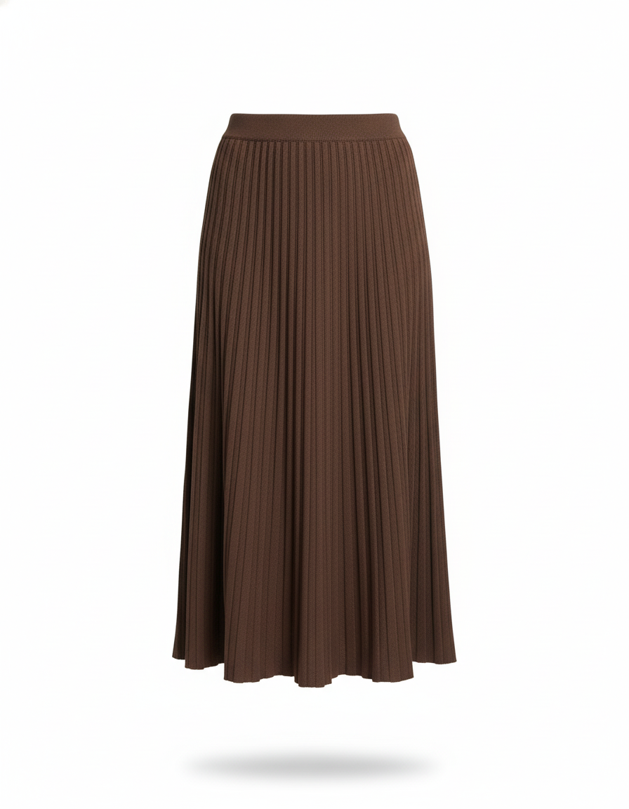 Ce qui distingue notre jupe, c'est l'artisanat précis de ses plis permanents qui conservent leur tenue impeccable, lavage après lavage, garantissant un tombé parfait en toute circonstance. La richesse de sa teinte marron profond s'harmonise avec une multitude de couleurs, offrant des possibilités de tenues infinies. Oubliez les compromis : avec la Jupe Midi Plissée Maille Élégante Douce, vous choisissez une pièce qui allie la fluidité d'une matière premium à la structure élégante d'un plissé parfait, pour une allure toujours impeccable et résolument contemporaine.
