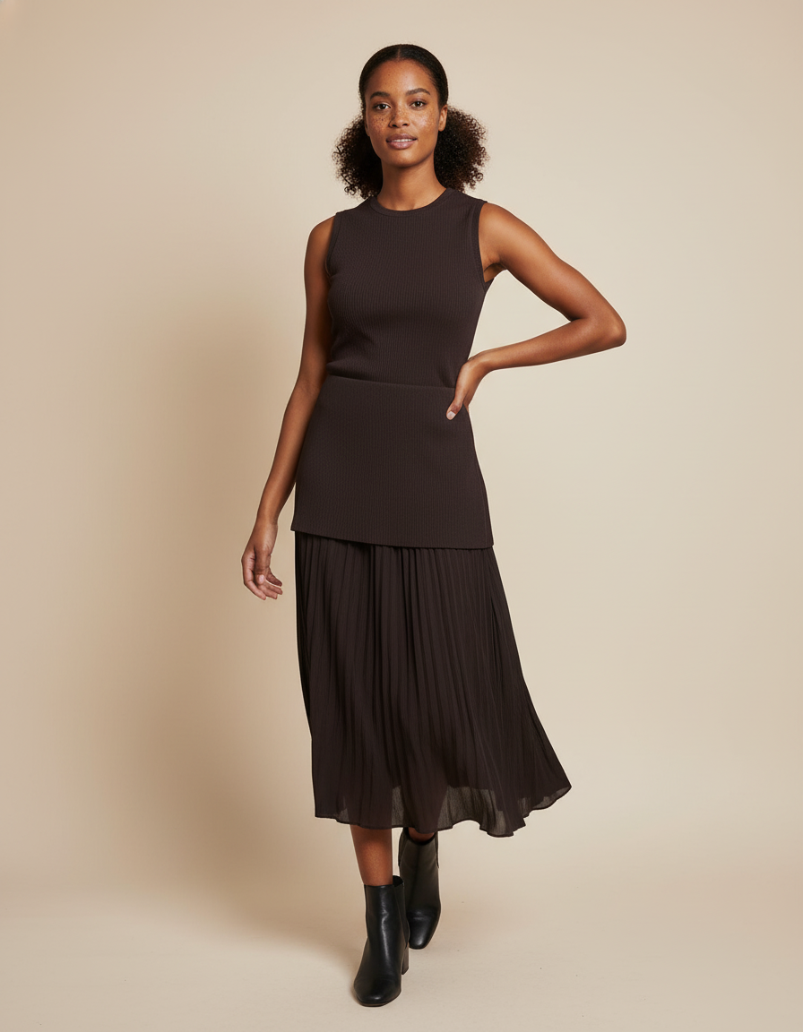 La Jupe Midi Plissée Marron Fluide : L'Élégance Redéfinie