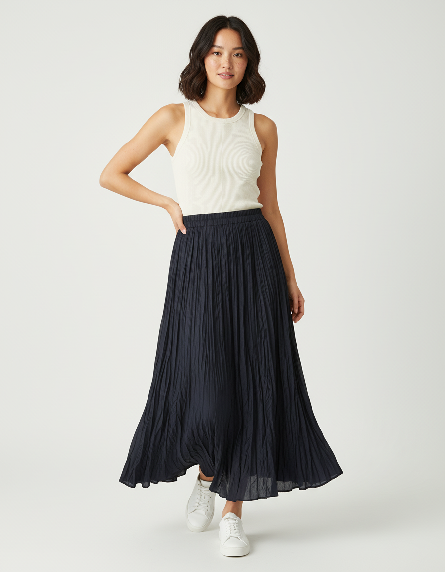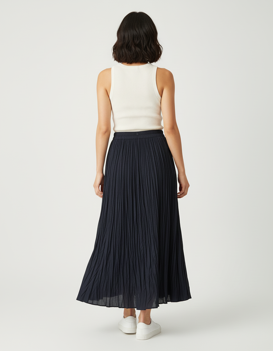 La Jupe Midi Plissée Marine : L'Élégance Décontractée Réinventée