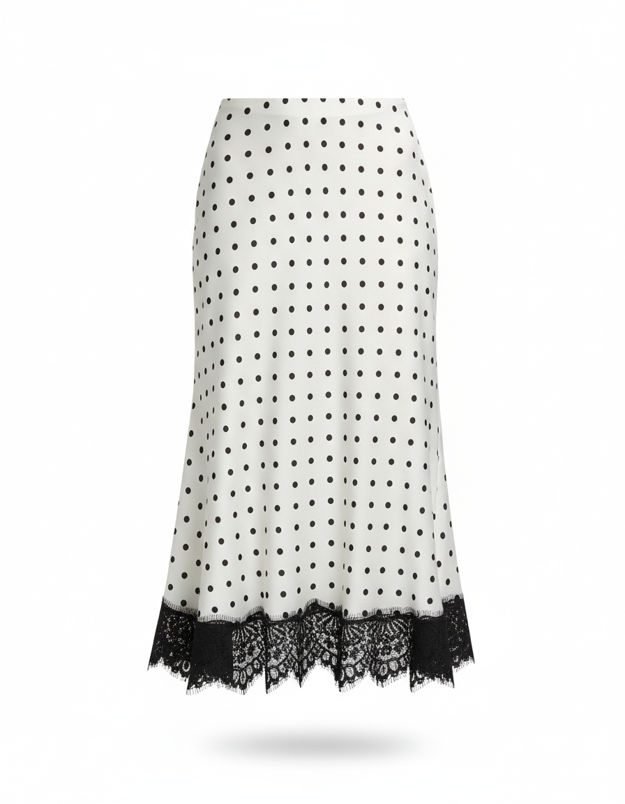 L'Élégance Redéfinie : La Jupe Midi Pois Dentelle Rétro Élégante