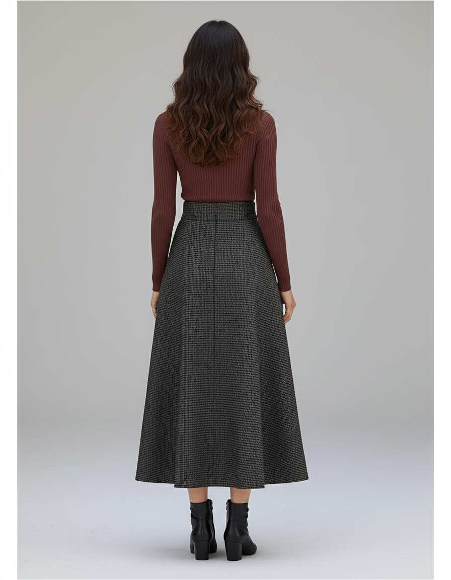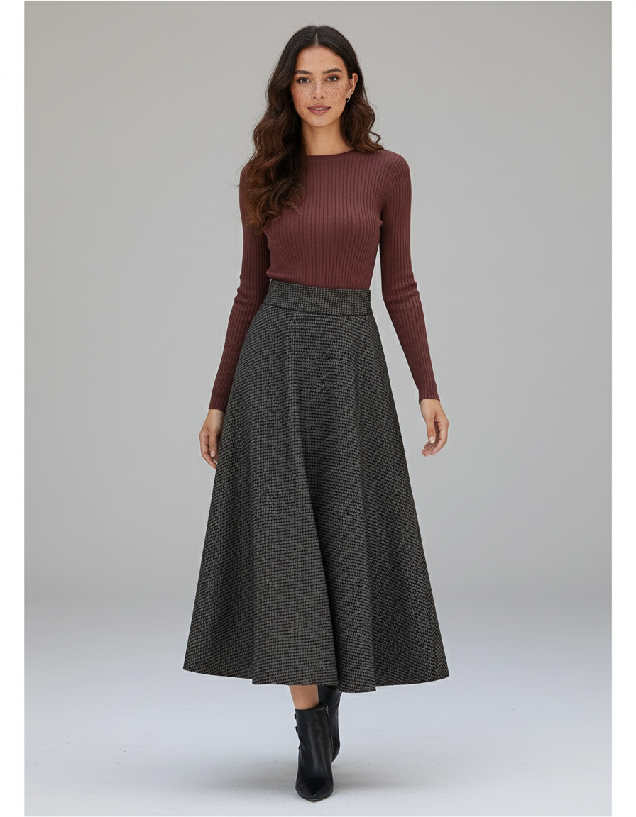 Élégance Polyvalente : La Jupe Midi Prince de Galles