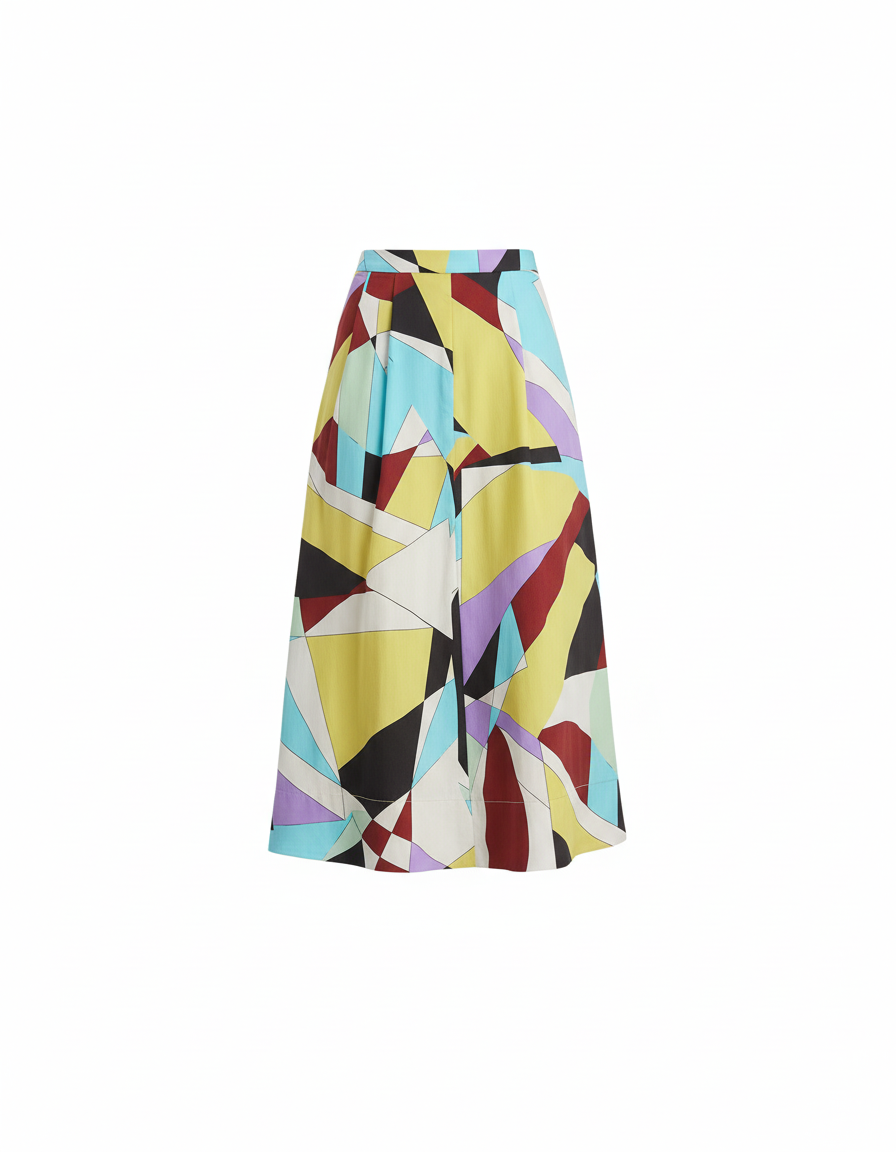 Égayez votre garde-robe avec notre jupe midi rétro aux motifs géométriques vibrants.