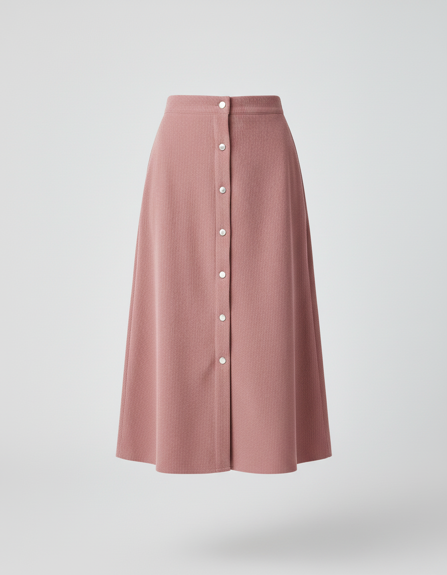 L'Élégance Sans Effort : La Jupe Midi Rose Côtelée