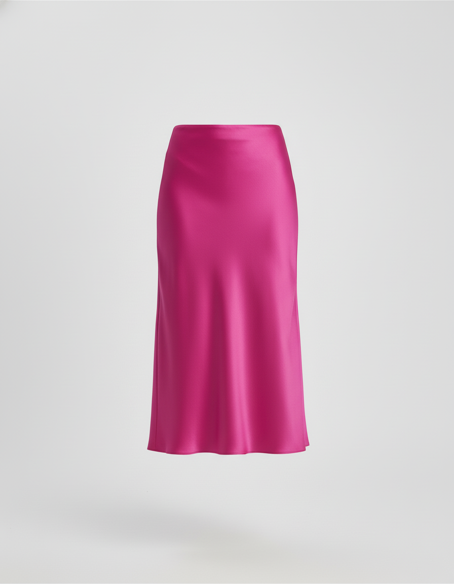 Jupe Midi Rose Fuchsia Satin Élégante : une pièce fluide et brillante