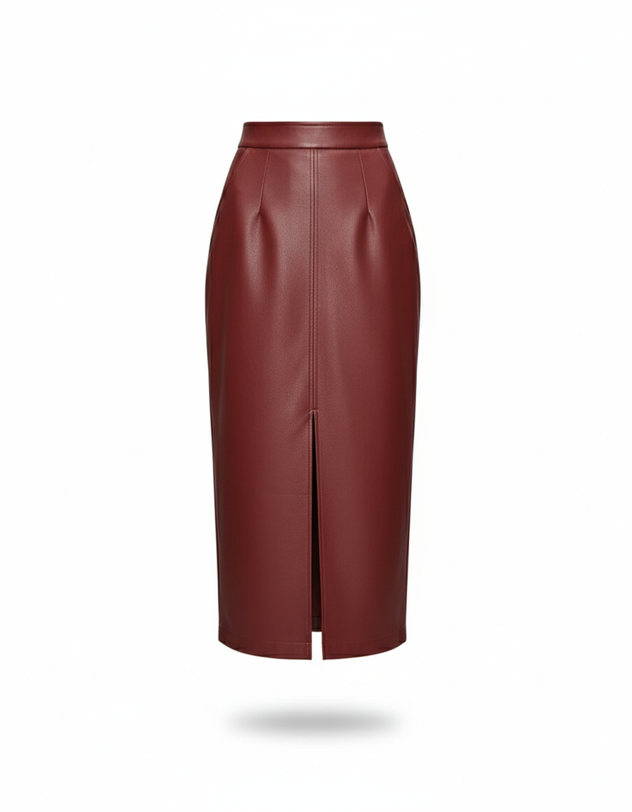 La Jupe Midi Bordeaux Simili Cuir : L'Élégance Assertive