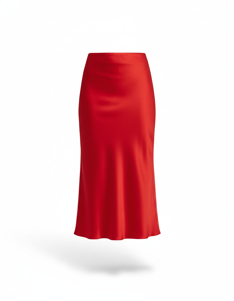 L'Élégance Sans Effort : Votre Jupe Midi Rouge Satinée