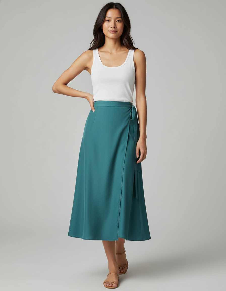 Pourquoi choisir la Jupe Midi Sarcelle Portefeuille Fluide