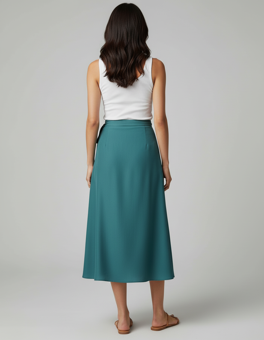 Jupe Midi Sarcelle Portefeuille Fluide : Caractéristiques