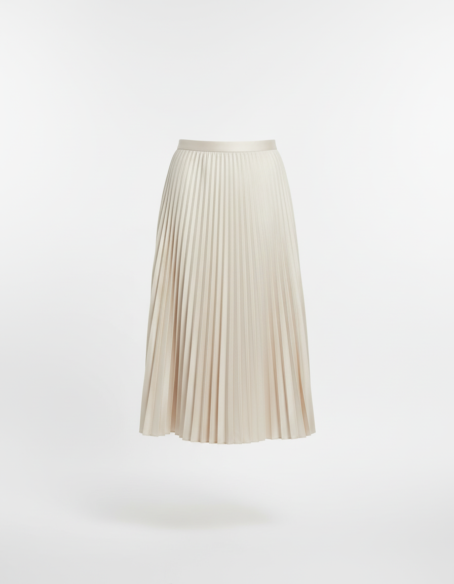 Jupe Midi Plissée Satin Beige