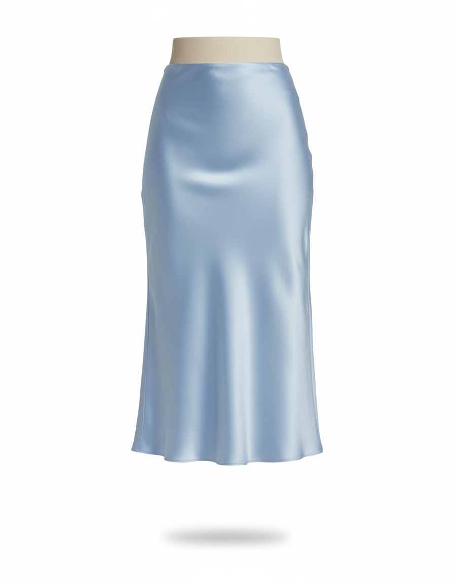 Élégance Fluide : La Jupe Midi Satin Bleu Ciel pour une allure Inoubliable