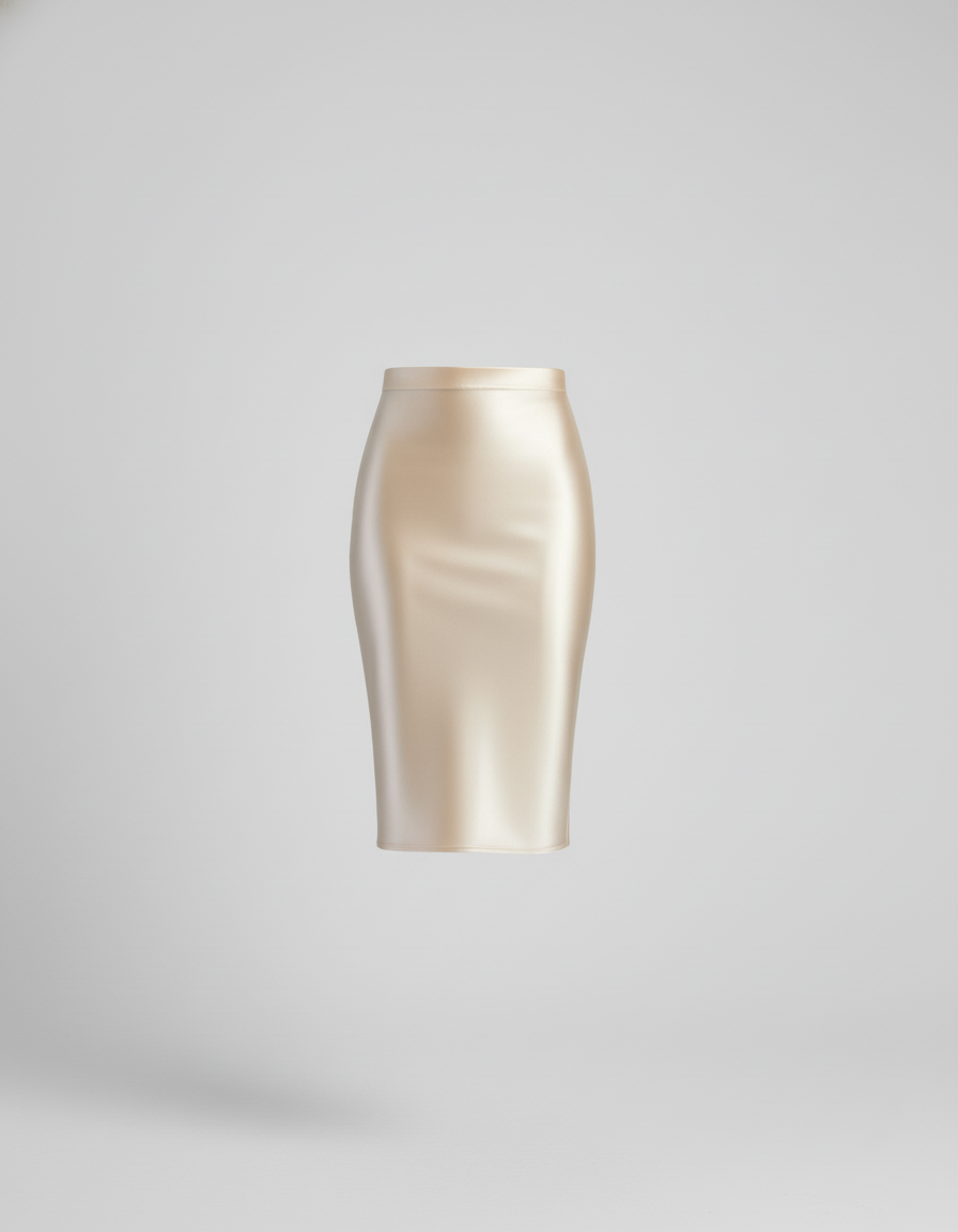 Élégance Fluide : La Jupe Midi Satin Brillant Champagne