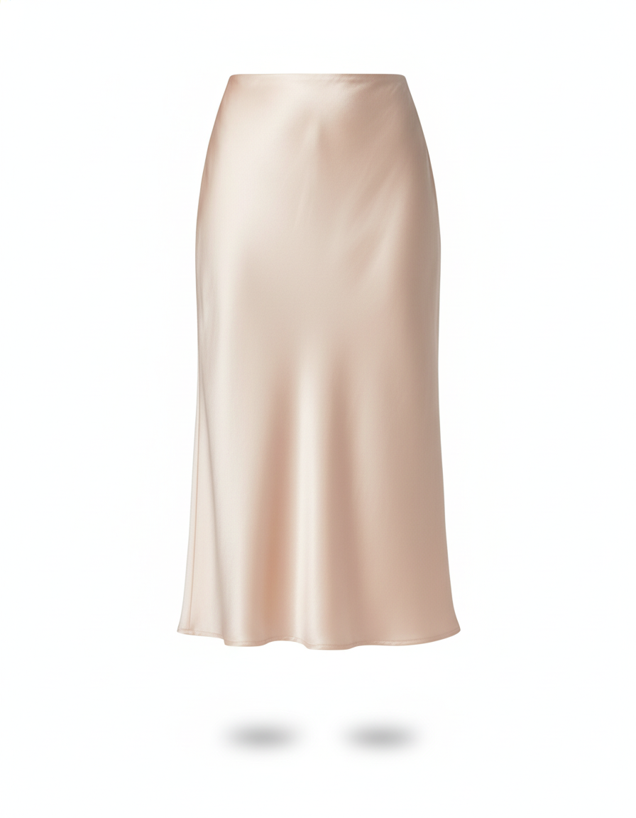 Jupe Midi Satin Champagne Élégante : L'Éclat Discret du Luxe