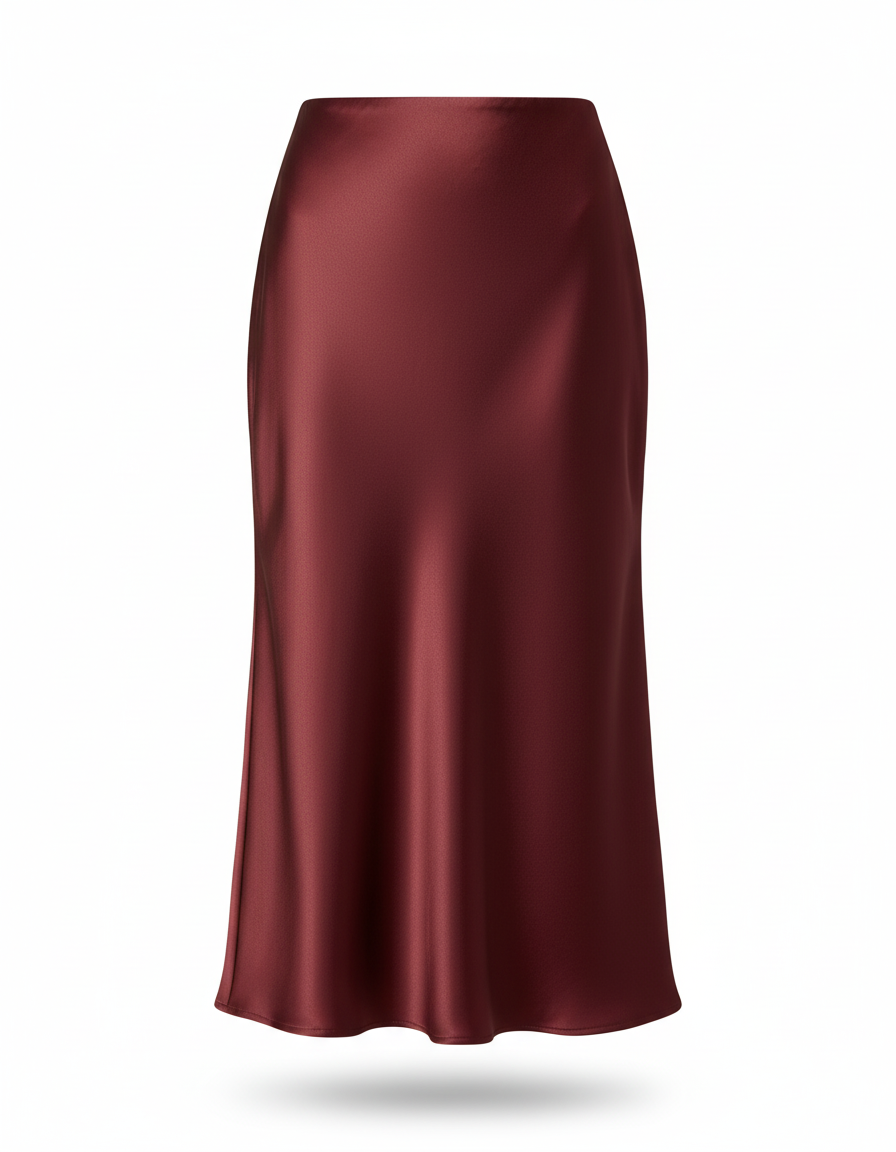 L'Élégance Redéfinie : Votre Jupe Midi Satin Fluide Bordeaux