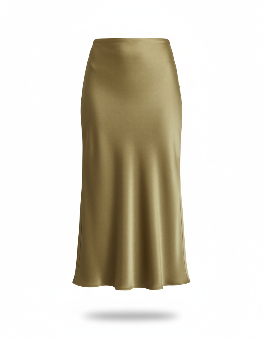 Jupe Midi Satin Kaki Élégante : Détails du Produit
