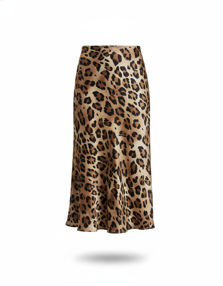 Jupe Midi Satin Léopard Fluide : L'Élégance Audacieuse