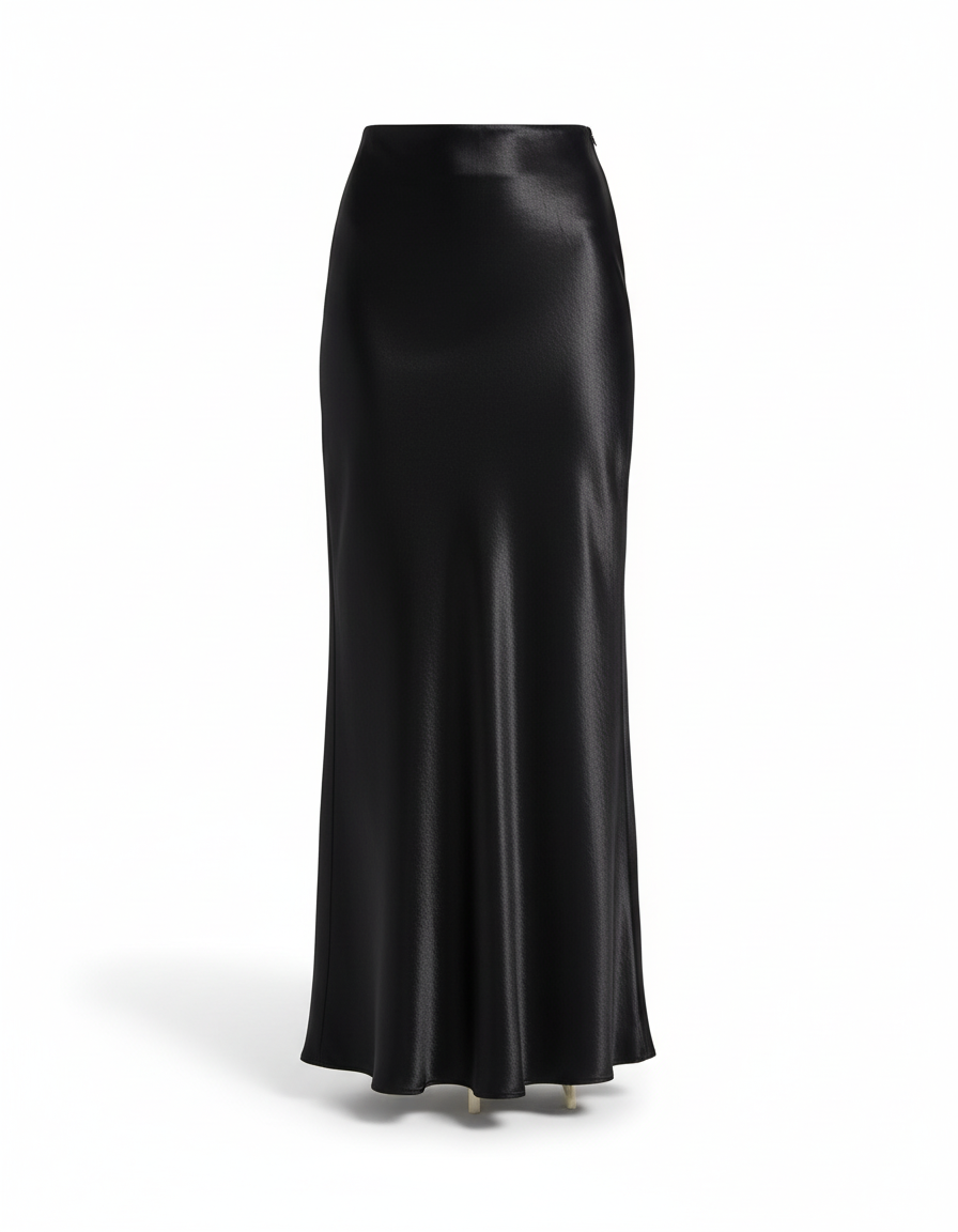 Élégance Redéfinie : La Jupe Midi Satin Noire Chic