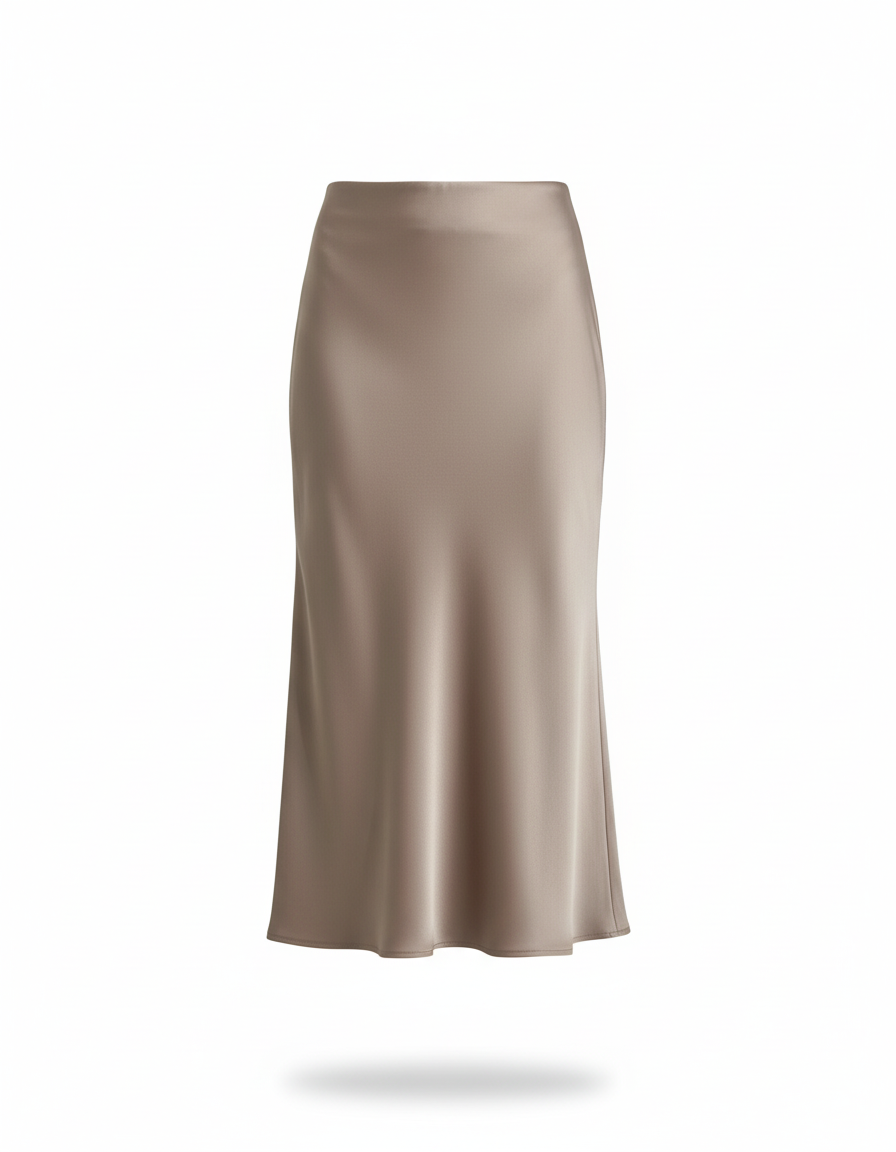 Élégance Fluide et Versatilité : La Jupe Midi Satin Taupe