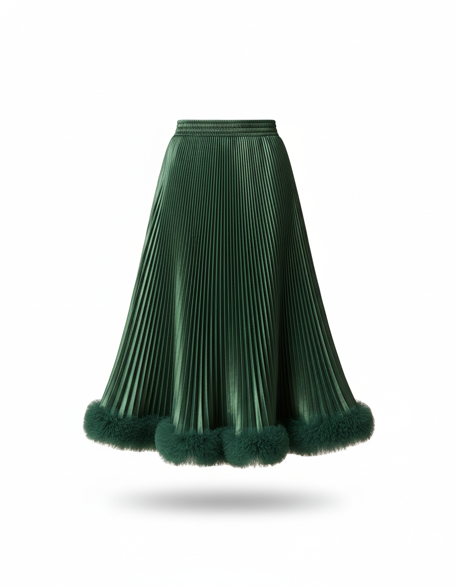 Jupe Midi Satinée Plissée Émeraude : L'Éclat du Glamour Moderne