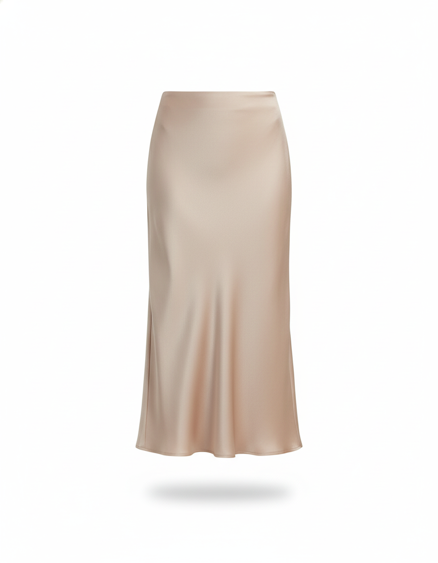 Jupe Midi Satinée Beige Élégante : Votre Allié Chic et Polyvalent