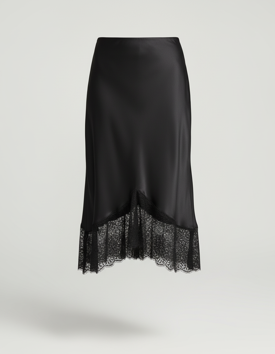Jupe Midi Satinée Dentelle Élégante précieuse : Style Fluide et Longueur Midi