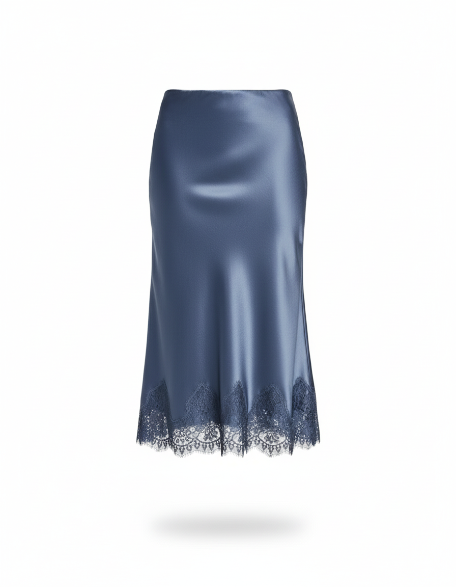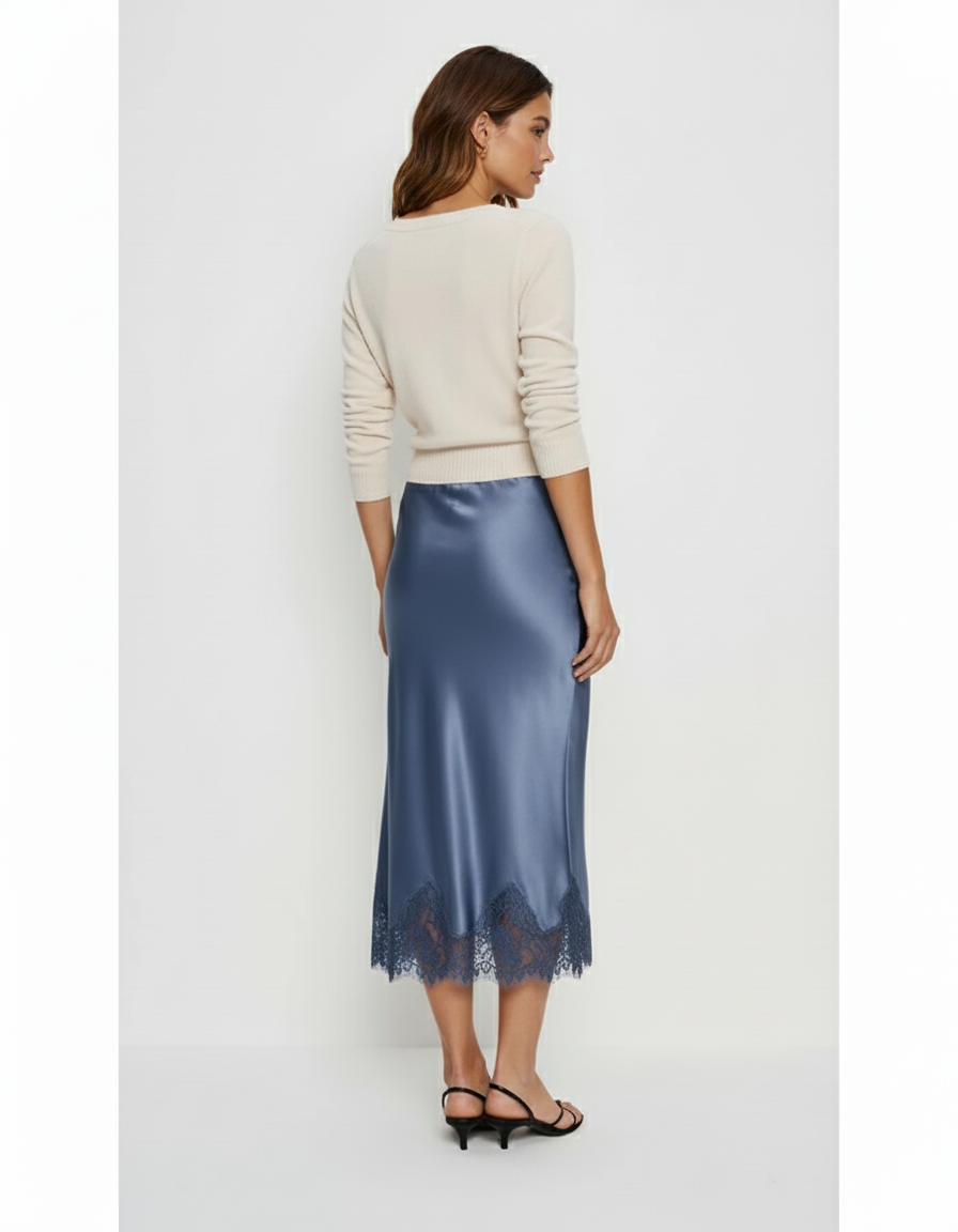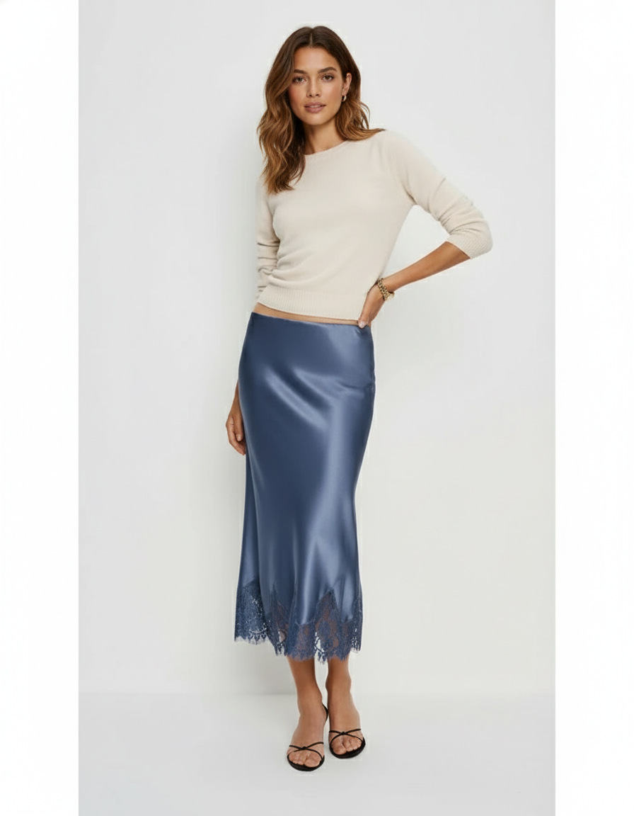 Jupe Midi Satinée Dentelle Élégante raffinée