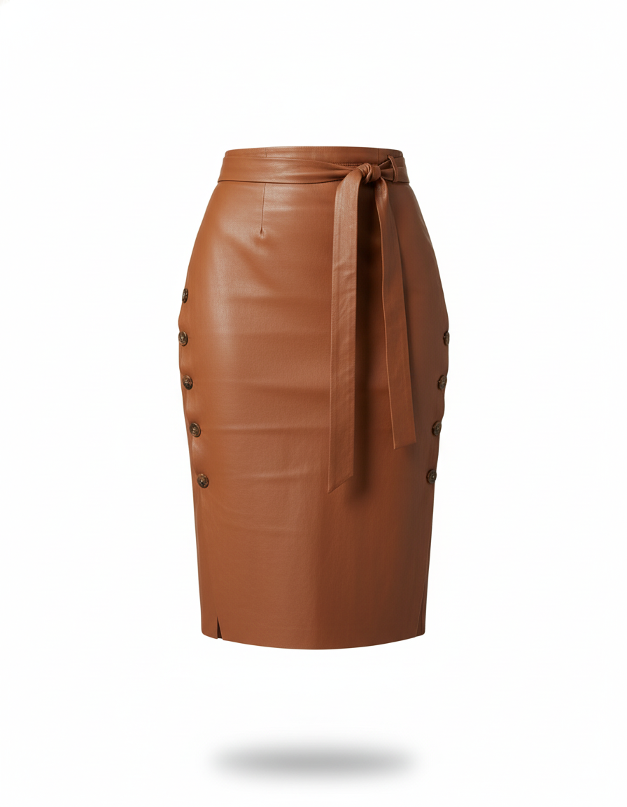 Jupe Midi Portefeuille en Simili Cuir Marron : L'Élégance Moderne Réinventée