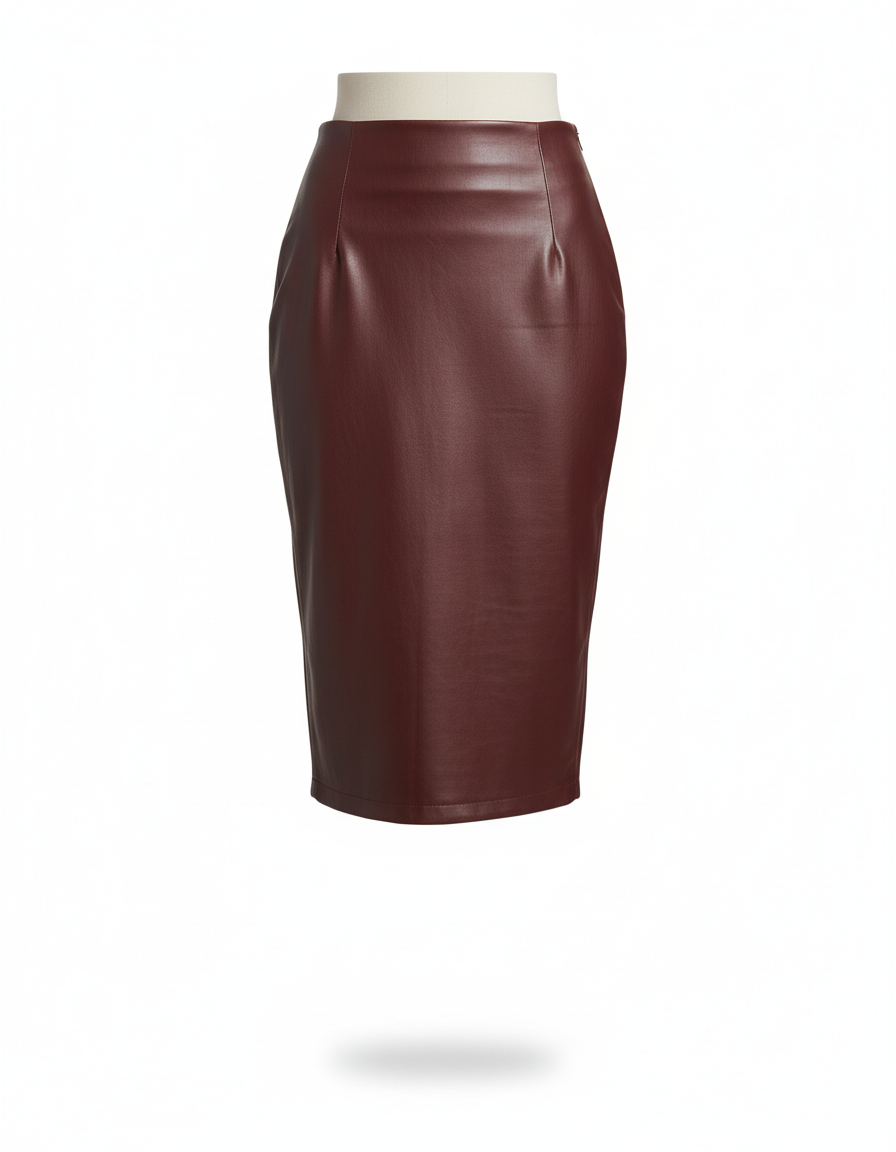 Jupe Midi Similicuir Bordeaux Chic : L'Élégance Moderne à Votre Portée