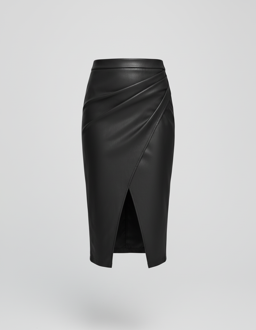 Fabriquée dans un similicuir premium d'une souplesse remarquable, elle offre le luxe visuel et tactile du cuir véritable sans aucun compromis éthique. Le drapé asymétrique et la fente discrète ajoutent une touche de sensualité raffinée, faisant de cette jupe bien plus qu'un simple vêtement : c'est une véritable déclaration de style. Facile à associer avec un chemisier pour le bureau ou un top en soie pour un dîner, la Jupe Midi Portefeuille Chic est l'investissement parfait pour une garde-robe polyvalente et résolument haut de gamme.