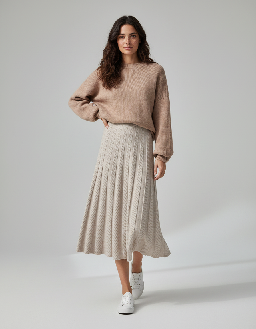 Jupe Midi Tricotée Plissée : L'Élégance Chaleureuse Réinventée